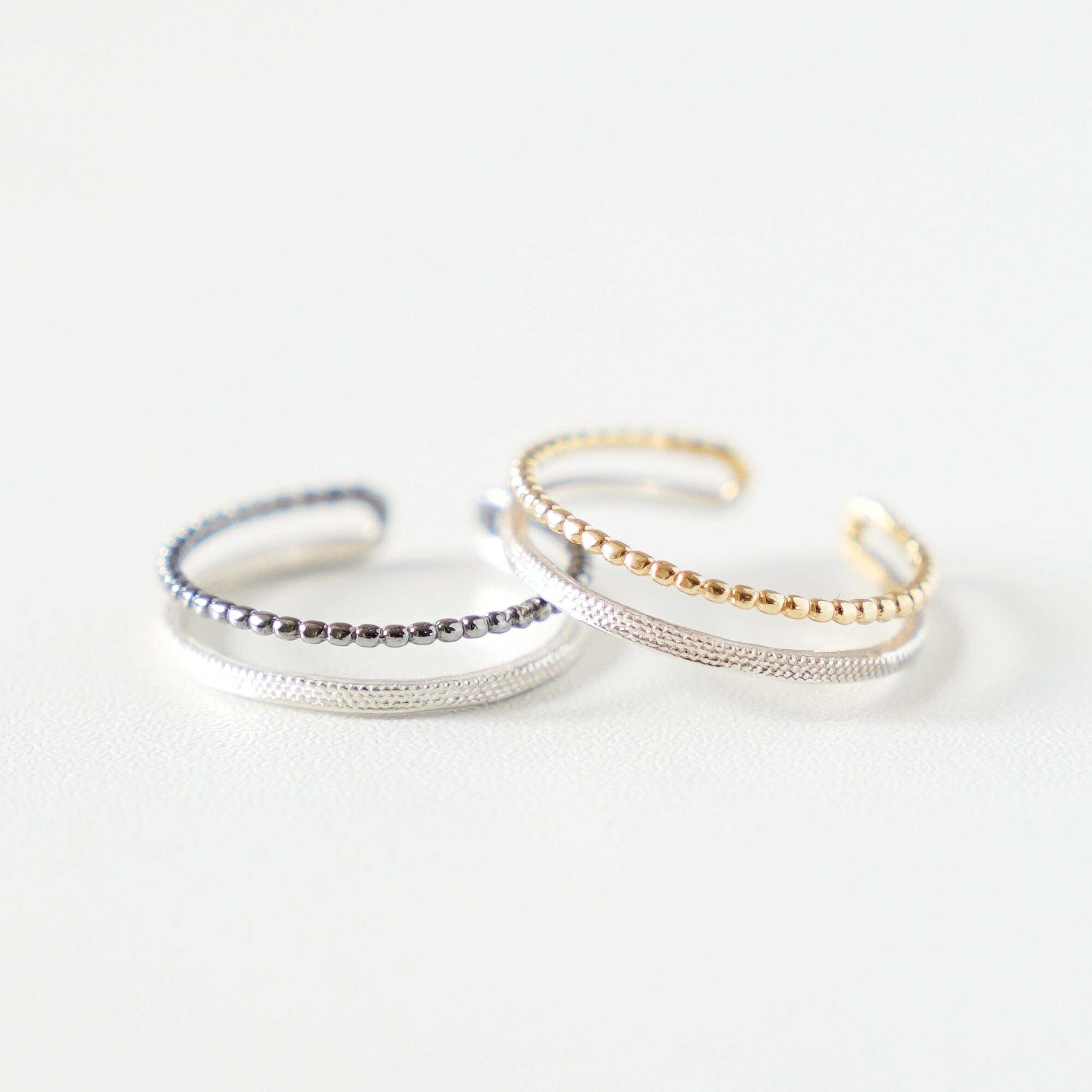 コンビカラーの2連の華奢リング-ブラック-(フリーサイズ)